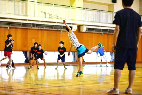 生憎、雨天のため、近隣の体育館でドッヂボール大会を催しました。