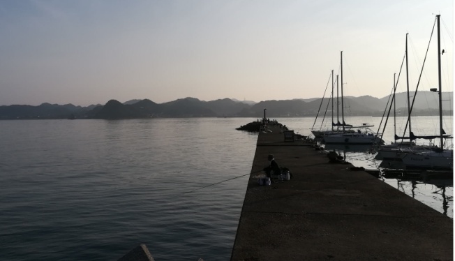 富浦港防波堤より対岸を望む